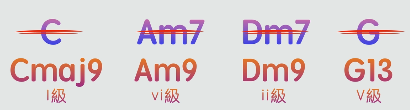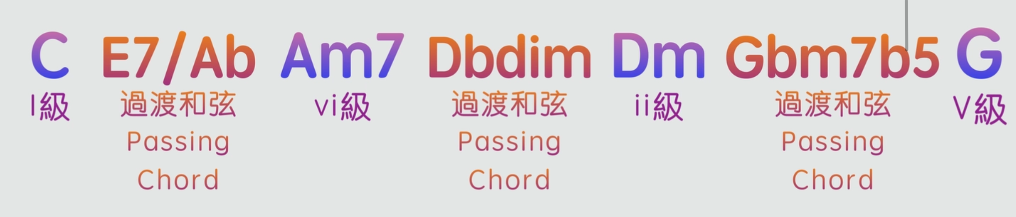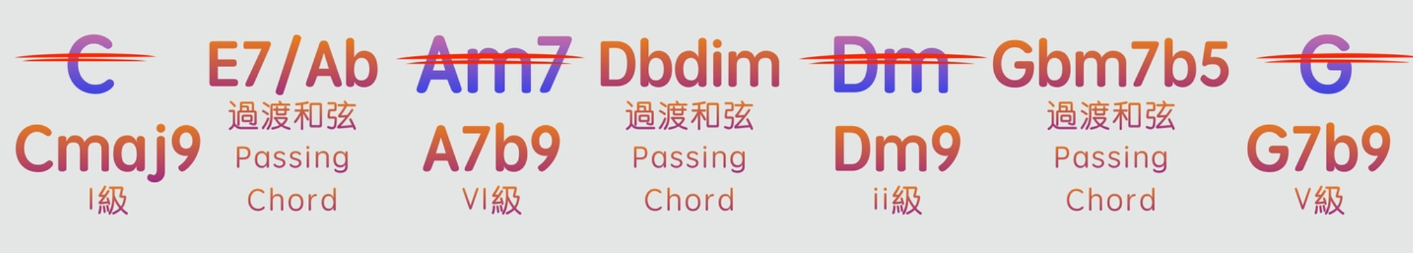 通過加入這些過渡和弦,整個和弦進行會聽起來更加流暢,並且充滿驚喜。
