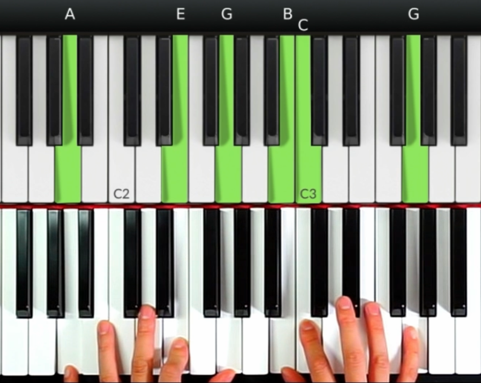 這個和弦其實是E和弦的第一轉位,可以讓C和弦到Am7和弦的過渡更加自然。