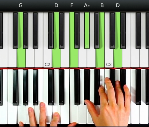 G7b9:在G7和弦中加入降9音(Ab音),讓和弦聽起來更加緊張和有張力。
