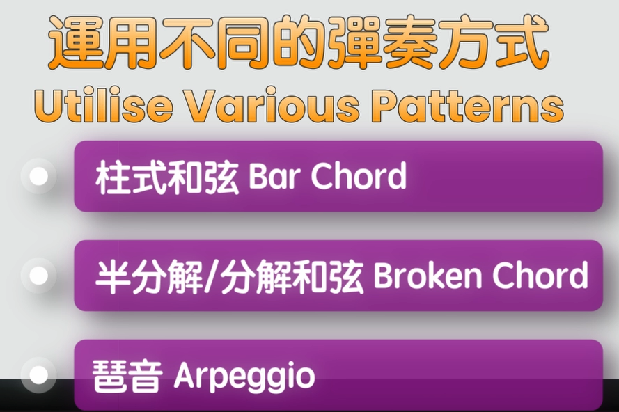 還可以運用多種彈奏和上行轉位和弦彈奏