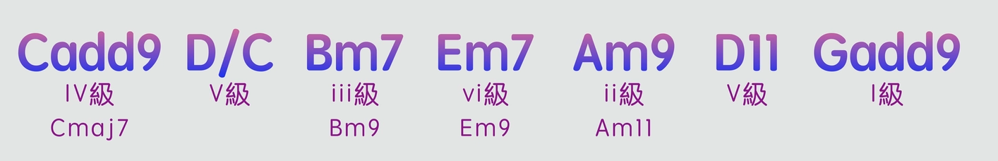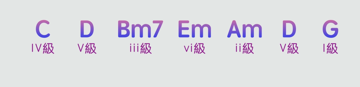 那麼以下是G調裡面的4536251和弦進行、作為今天的和弦進行範例。