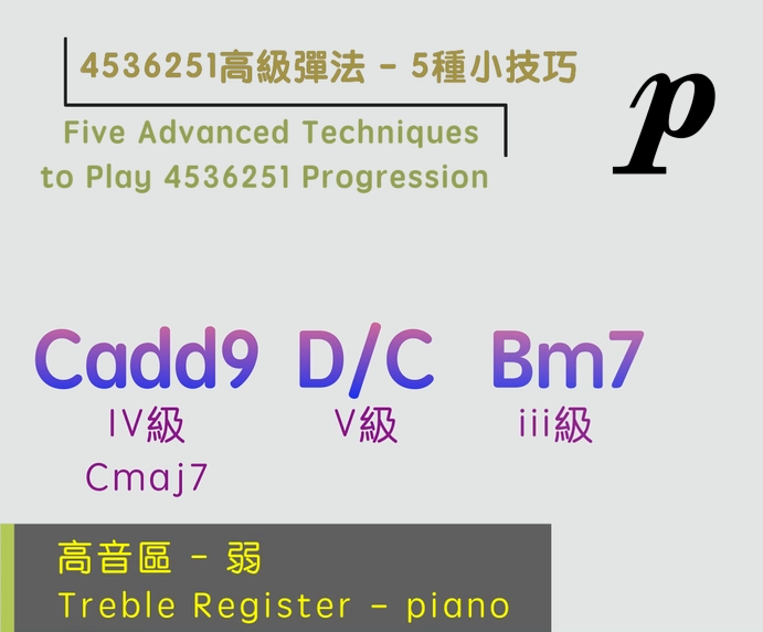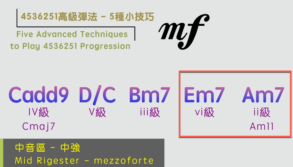 今天我會跟大家分享如何將4536251萬能和弦進行彈得高級,我們一起來學習5種小技巧來提升你的彈奏。