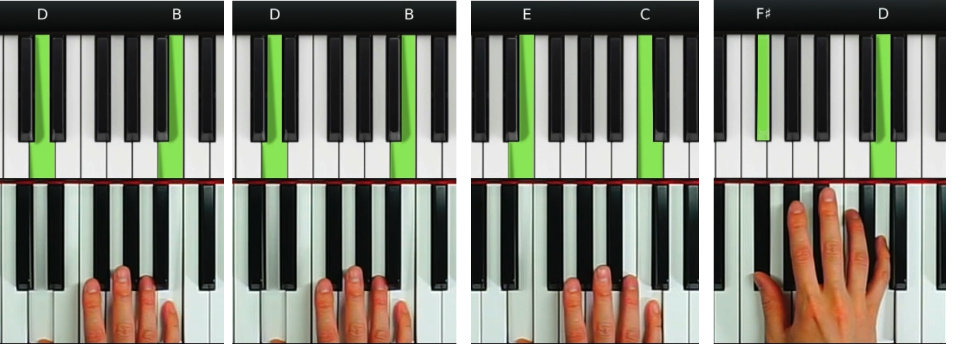 第二種小技巧需要我們學會運用不同的音區來彈奏。比如一開始在高音區裡面彈奏,跟著就換到中音區彈奏,到了最後結束的時候,我們可以在低音區裡面彈奏。