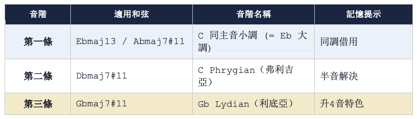 這條音階適用於 Ebmaj13 和 Abmaj7#11: