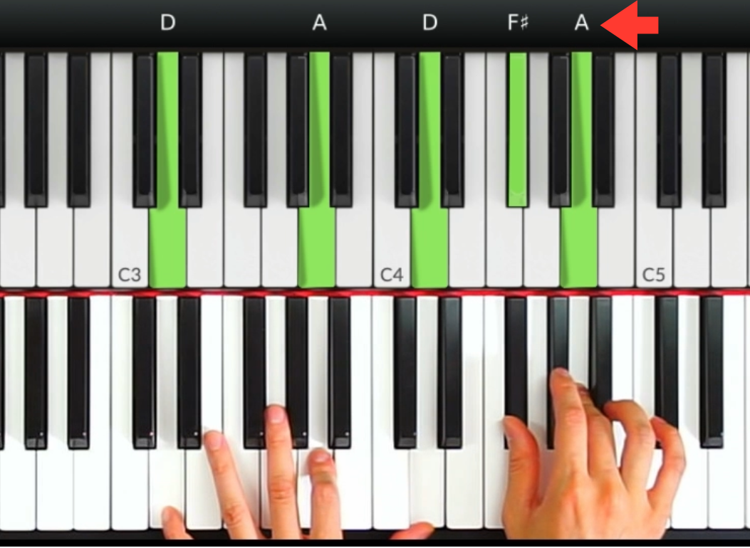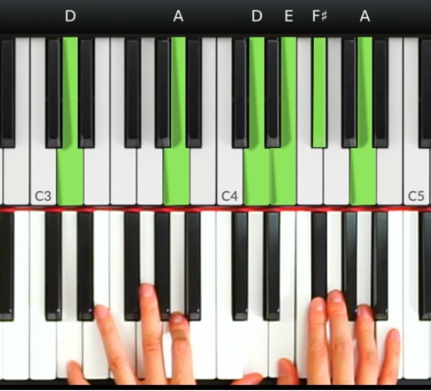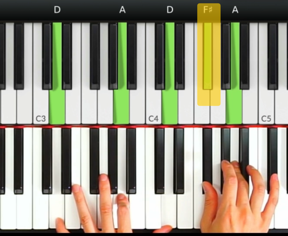 同樣,彈奏D和弦的時候,F#也可以作為過渡到A音的裝飾音,用於加強音樂的節奏感和旋律感。
