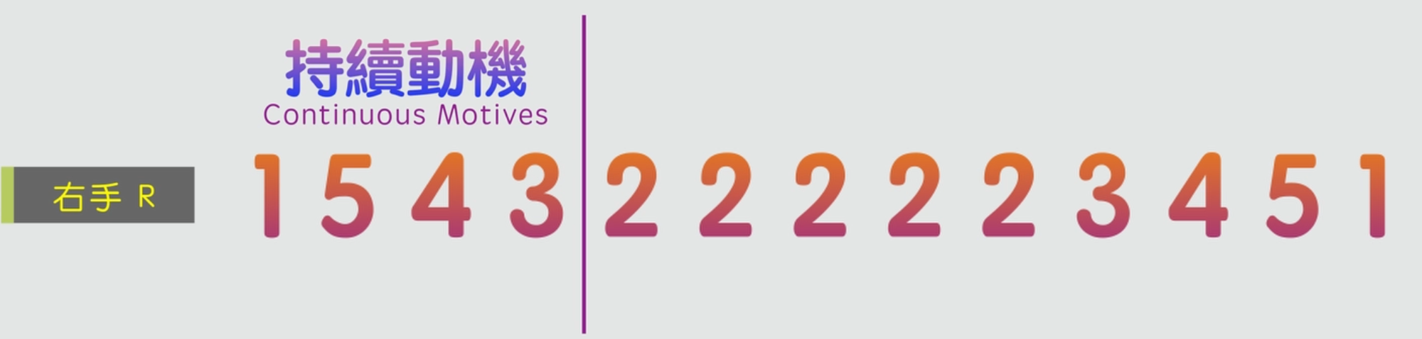 第二兩小節, 右手彈另外一串即興旋律音。前面右手彈的四個音都是1543,那麼我們看成是持續動機。