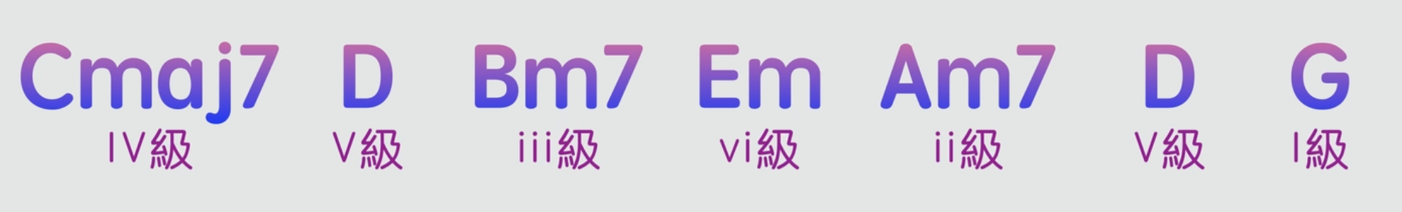 然後我們來看看G大調的4536251和弦進行是怎樣彈的。