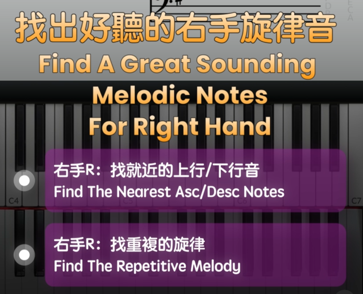 第一個步驟我們的右手需要在琴鍵上找出好聽的旋律音。有兩個方法我們可以去嘗試一下。