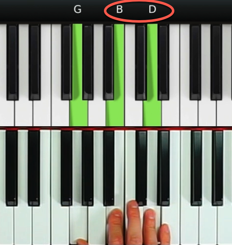 G (V級) 和 Bdim (VII級) 和弦,有兩個音:B和D