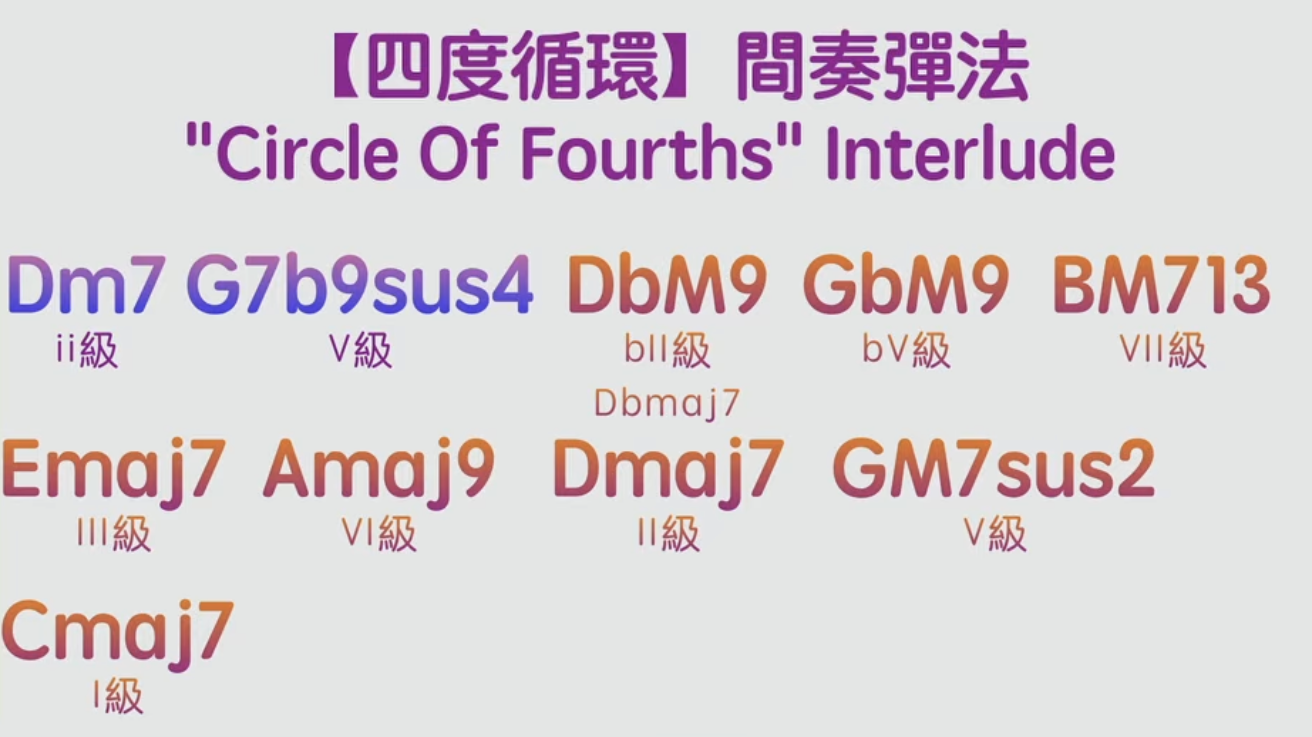 四度圈:從Db開始來逆時針方向開始進行四度循環的間奏編排。