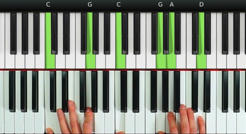 這個步驟有些特別:嘗試不要把和弦彈奏的最後一個音落在1音上面去。這有一點違反了我們對基礎鋼琴彈奏固有的常理。通常我們的彈奏都是落回到1音來結束樂段的。但不用困惑、我們現在就來學習一下這個方法的特別之處。