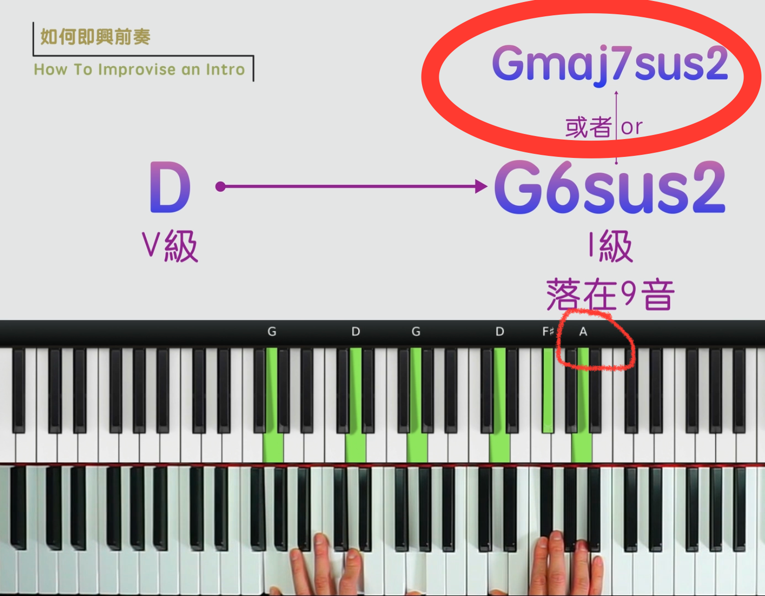III級和弦我們用Gmaj9/B。還是一樣,用GAD的右手持續動機。