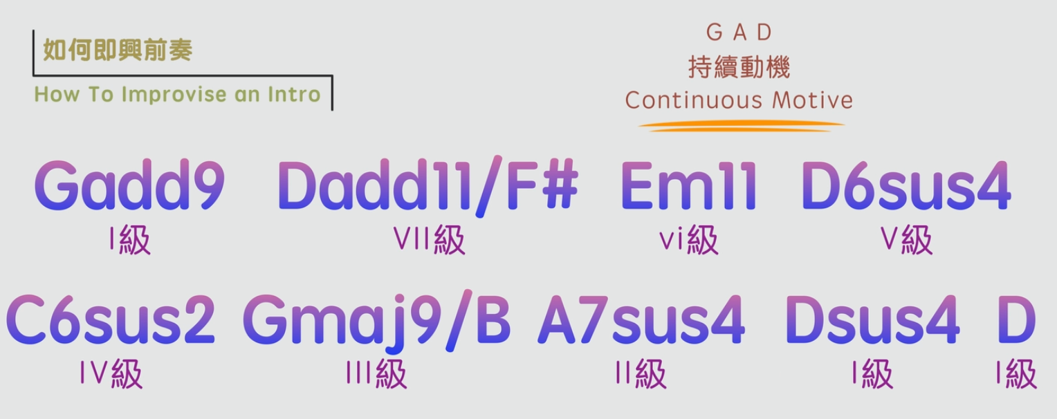 所以如果掌握好了持續動機的技巧,就能夠輕鬆地駕馭和弦的高級彈法,但同時間又不需要刻意地記住複雜的和弦名稱。