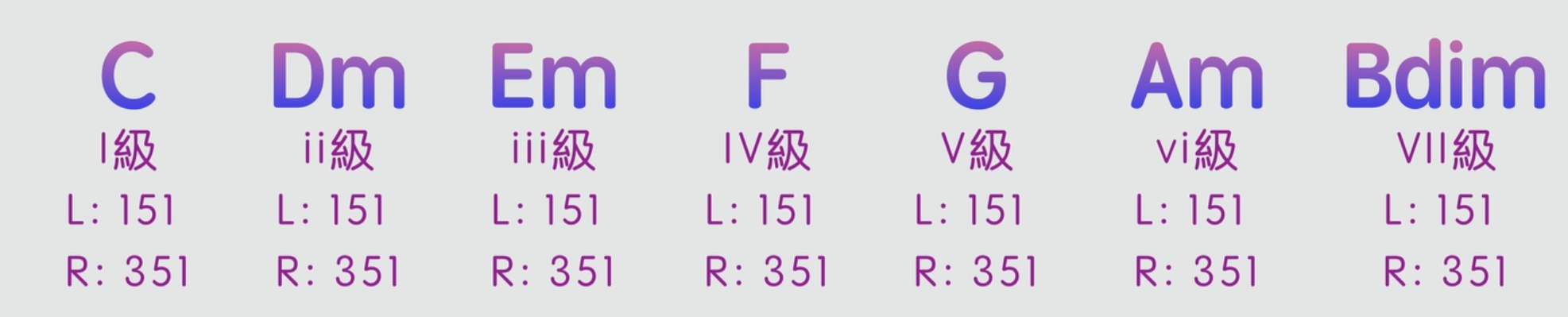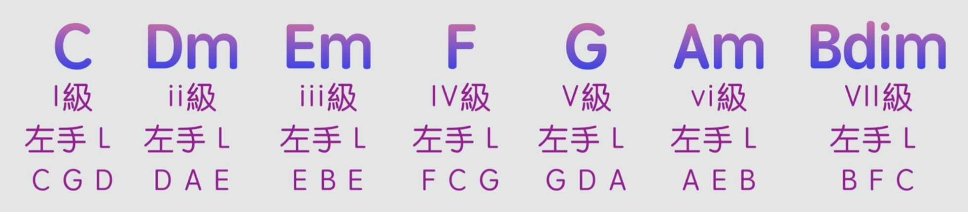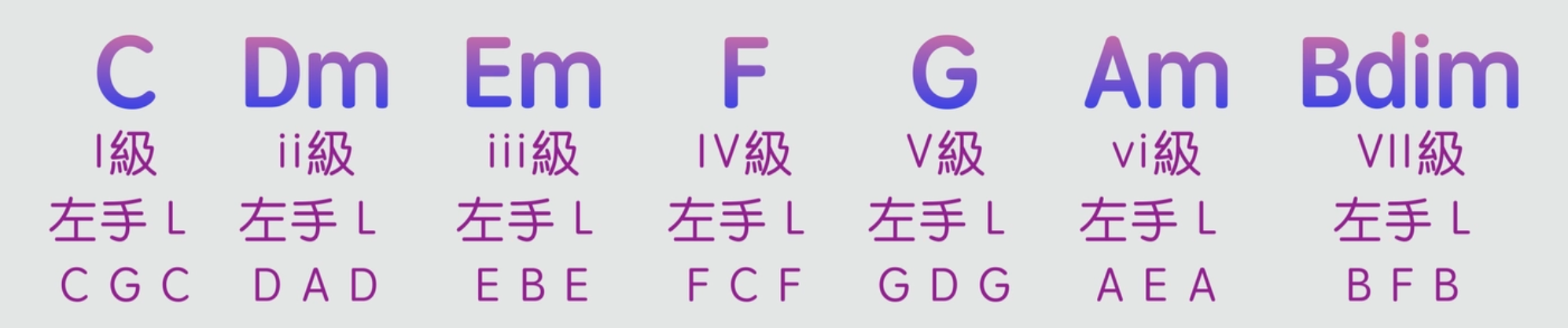 於此類推,調式裡面的每一級的和弦都要練習一下。