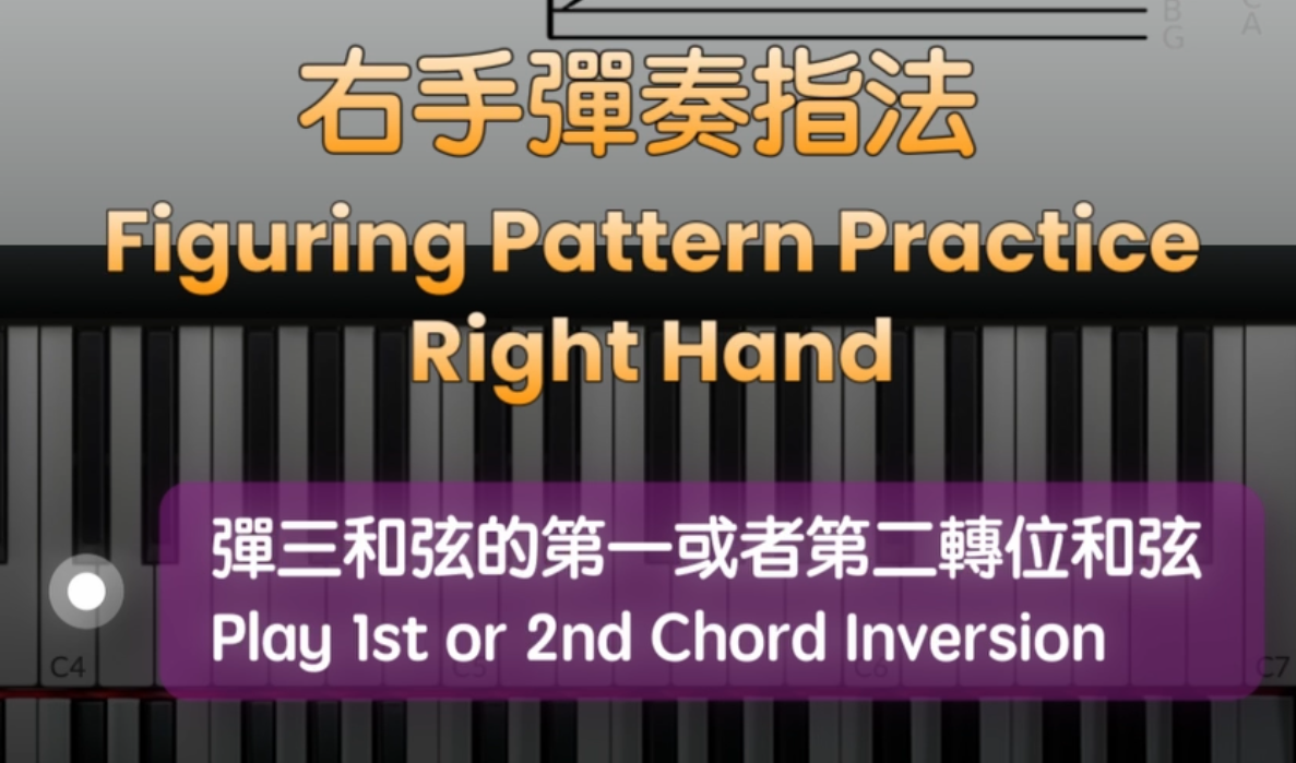 第二種必學練習就是右手的練習。右手我們該如何彈奏呢?在這裡我們學習彈奏三和弦的第一或者第二轉位和弦。