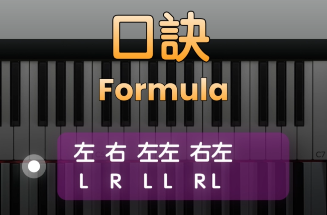 第二種伴奏織體有另一個口訣: 左 右 左左 右左,跟第一個口訣很類似,只是在最後一拍的彈奏有點不同而已。