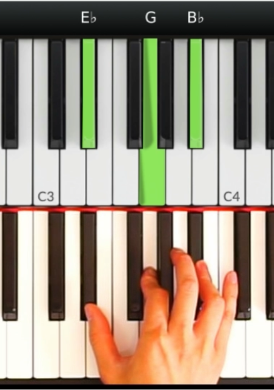 我們再來看另外一個調:Eb大調。 形狀是像一個倒立的三角形,就是一級和弦Eb的形狀。
