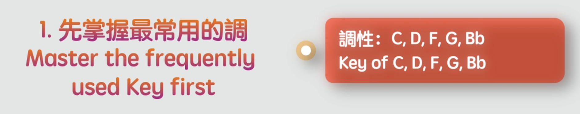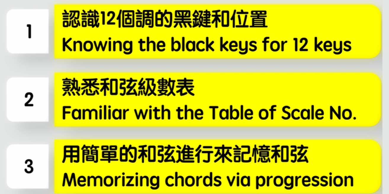 好!我們現在來快速地總結一下今天所學到“如何有效地掌握12個調的三個步驟”。