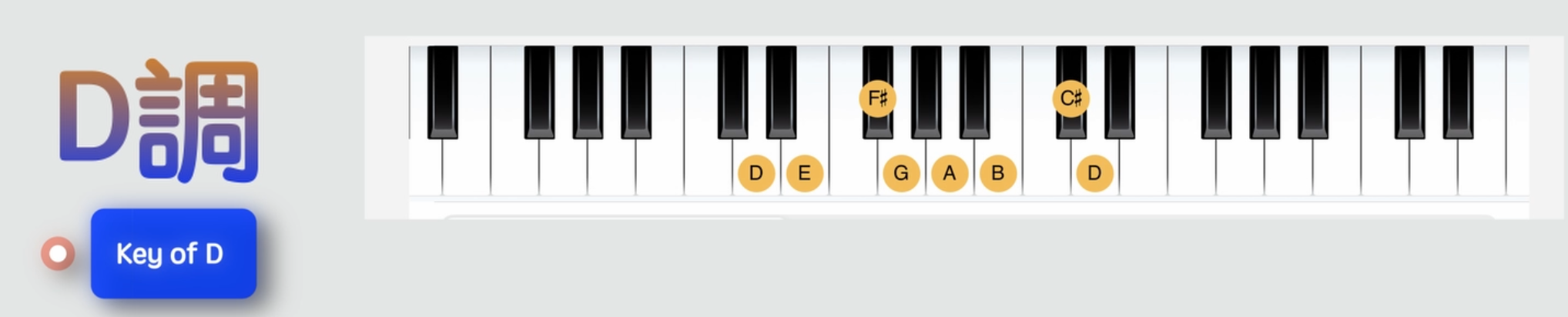 只有兩個黑鍵的D調