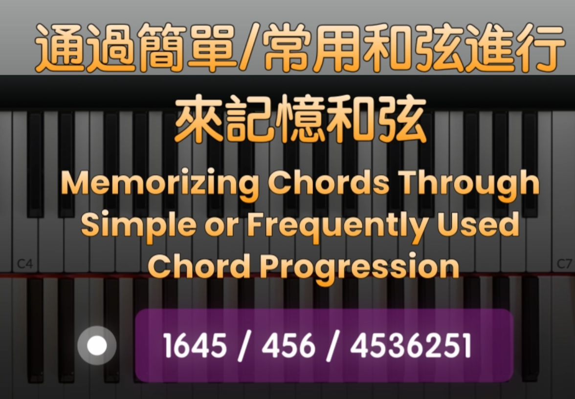 第三個步驟我們可以用最簡單和常用的和弦進行,來記憶每個調的和弦。比如1645, 456或者4536215等等常用的和弦進行。