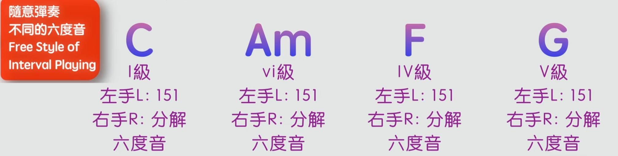 2. 右手在不同和弦上自由隨意地彈奏六度音
