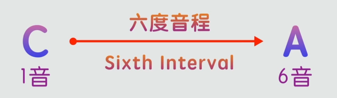 一音是C, 六音是A,那麼C和A一起彈奏就是六度音。