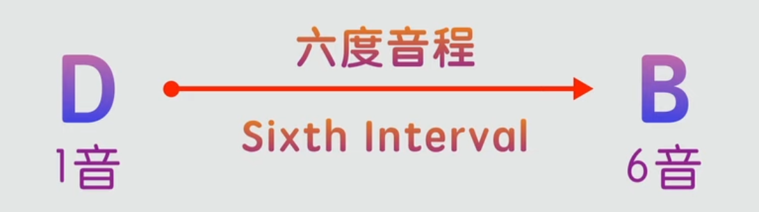 一音是D, 六音是B,那麼D和B就是六度音。