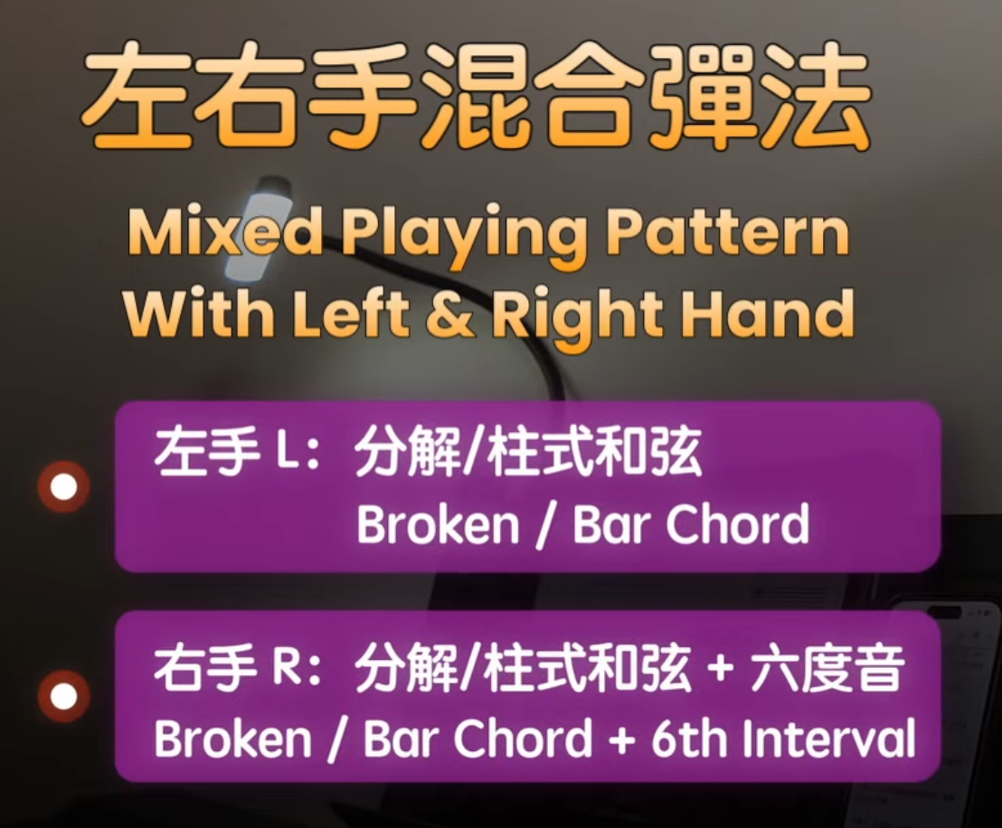 1. 左手交替使用分解和弦與柱式和弦