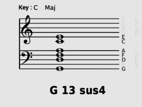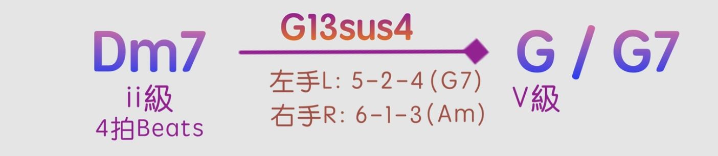 左右手合在一起就是G13sus4和弦了。
