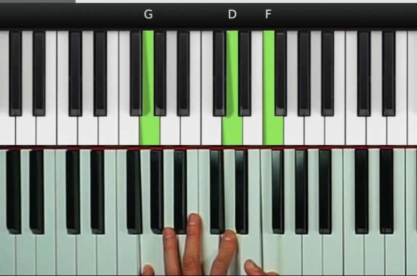 G13sus4的彈奏其實並不複雜。如果我們鬆開右手的話,那麼左手就是彈G7。鬆開左手的話,那麼右手就是彈Am。