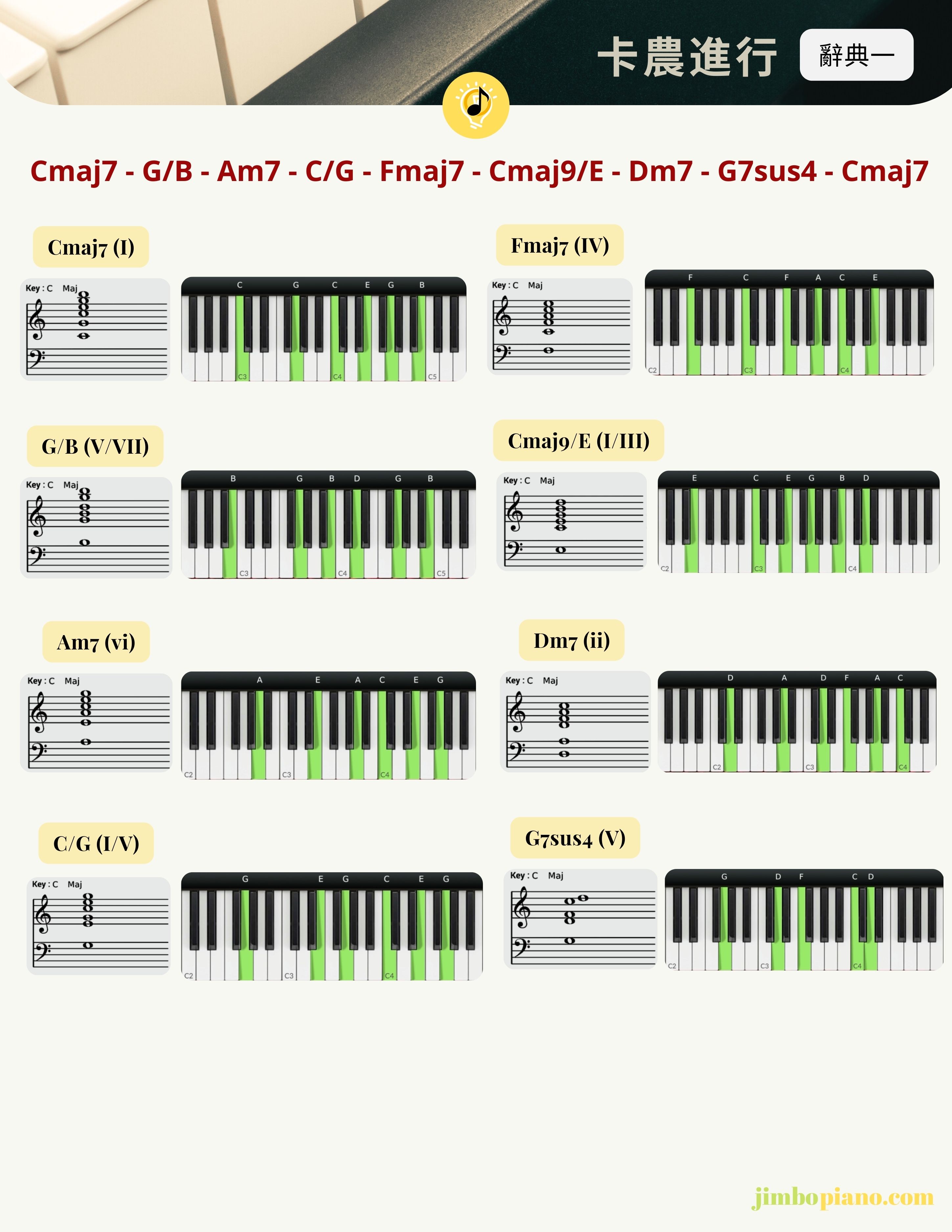 《卡農進行辭典 - 全指南》 是一本專為探索卡農和弦進行創新可能性的電子書工具。無論你是初學者還是進階彈奏者,都能在這裡找到實用且靈活的音樂靈感。