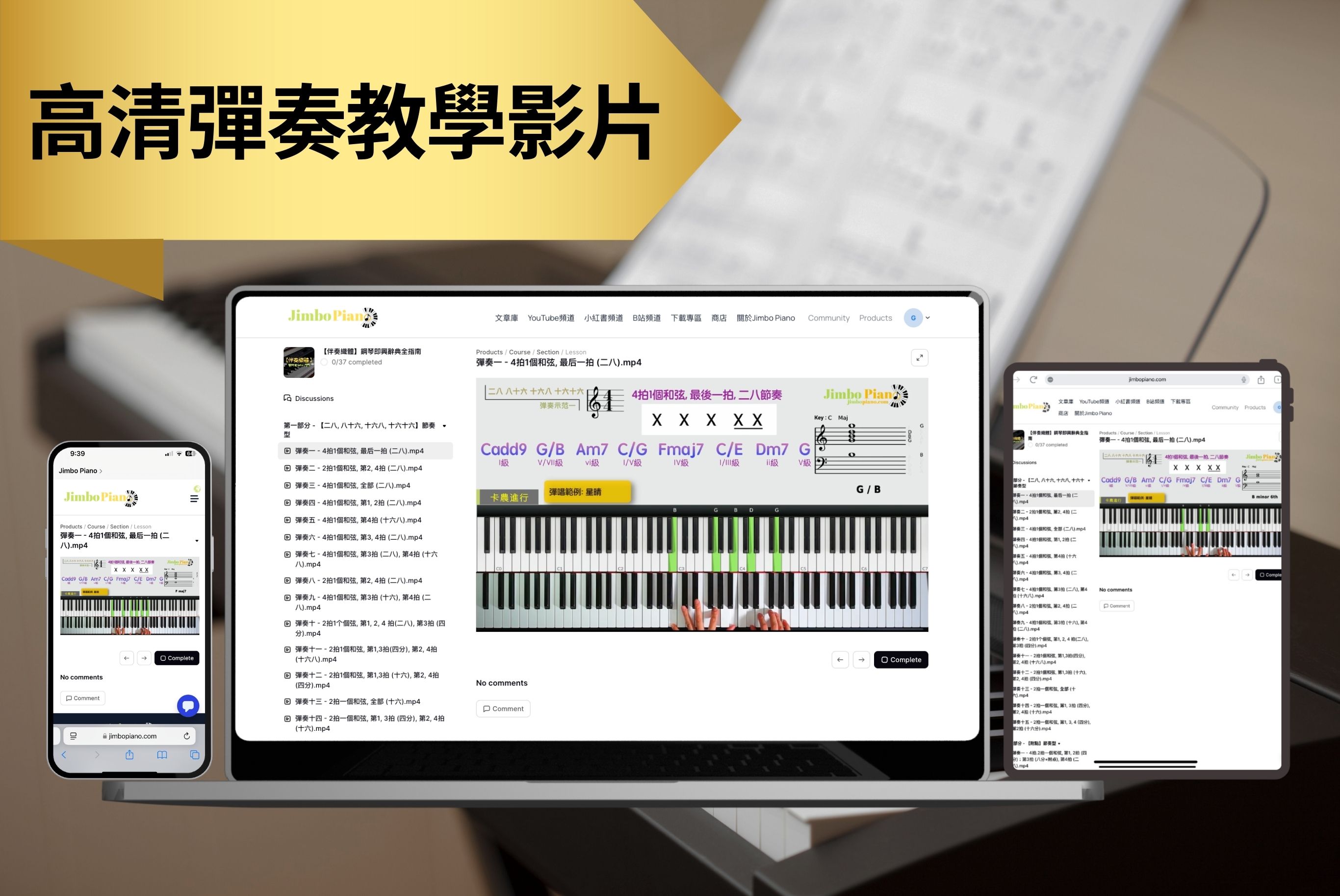 課程購買後, 你會收到一封購買確認郵件,點擊鏈接就會去到Jimbo Piano官網,註冊登錄後就可以觀看高清彈奏教學影片。