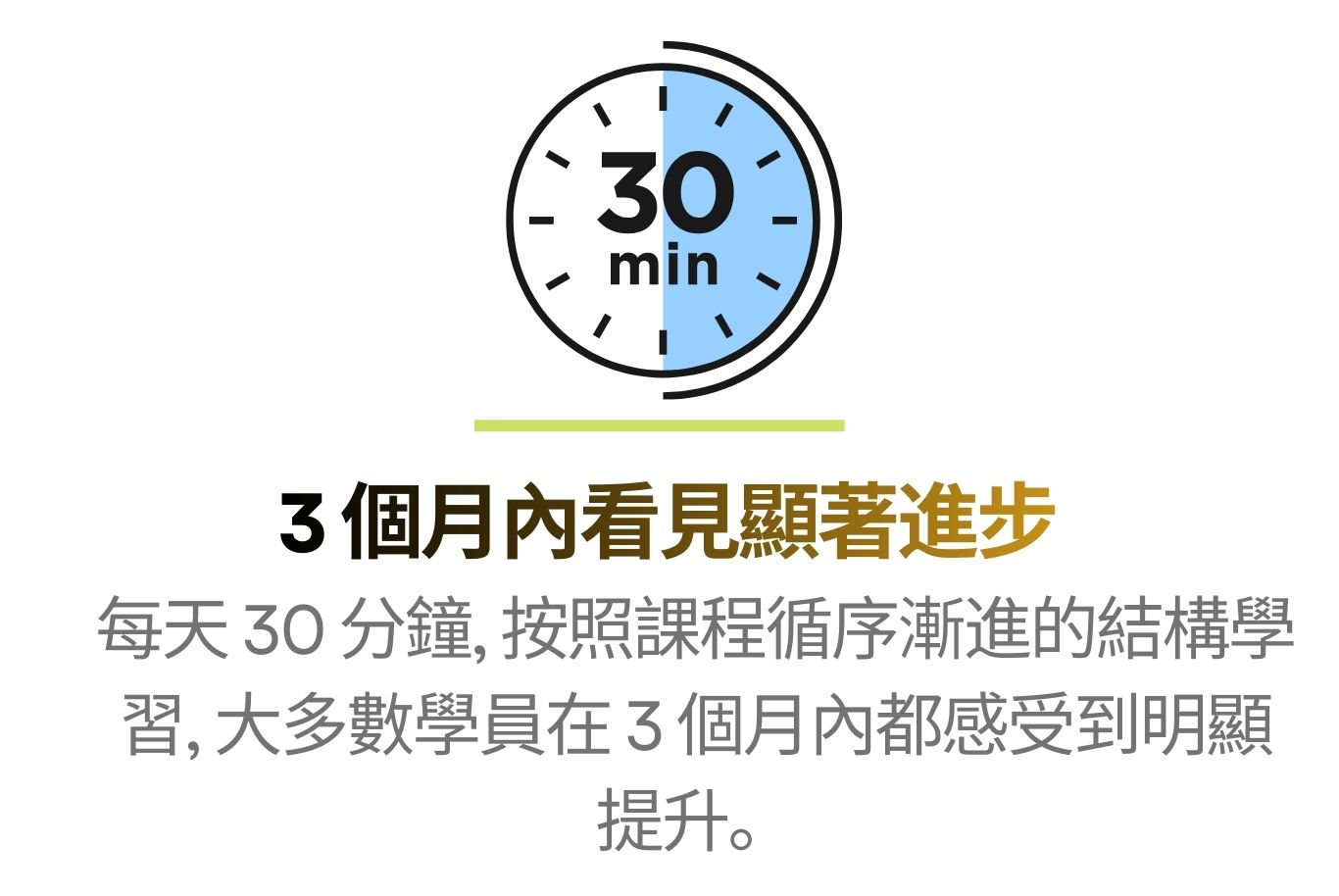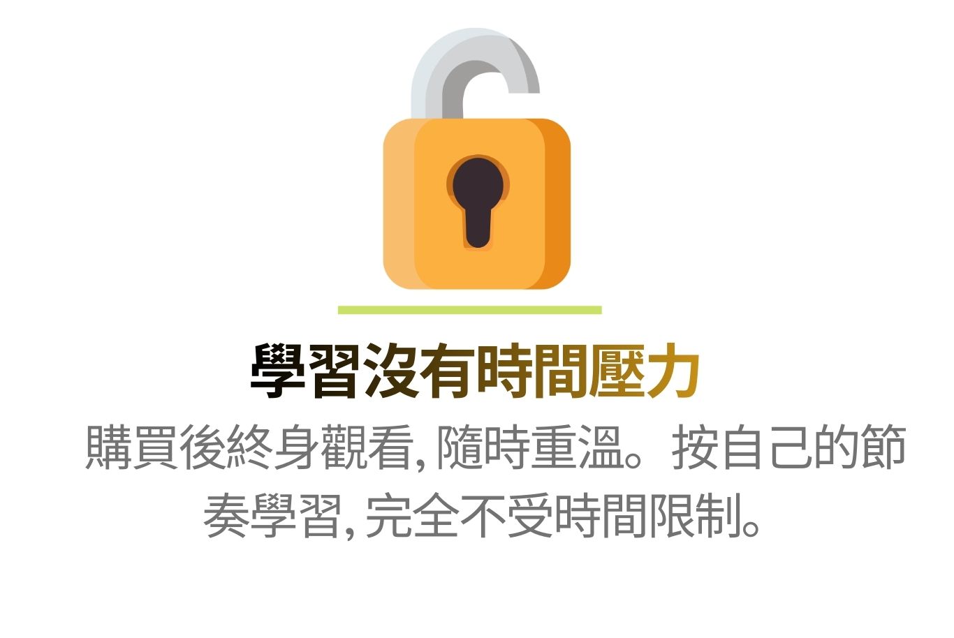 建議每天練習30分鐘, 大約3個月可以完整學完所有內容。但因為是終身觀看,你可以依照自己的節奏學習, 全沒有時間壓力。