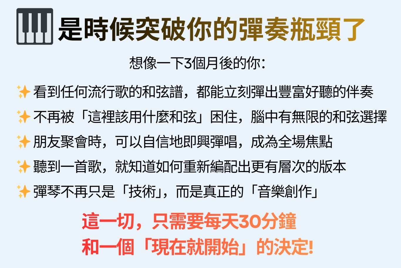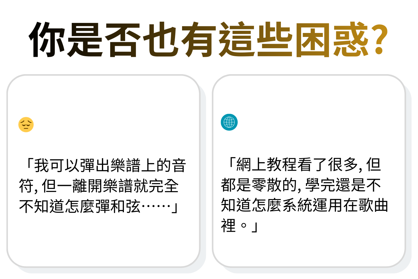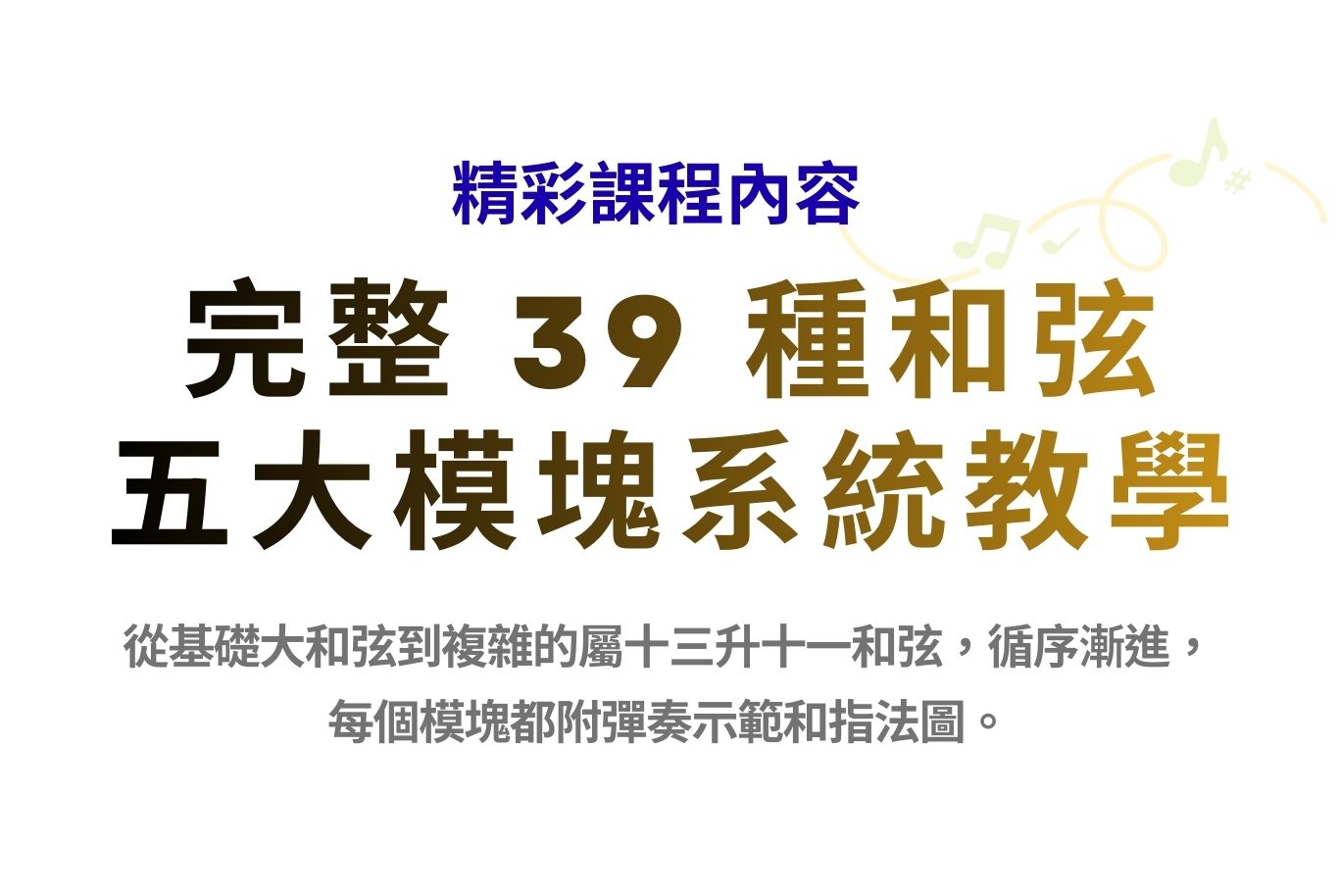如果你已經會彈基本的C、F、G三和弦,就可以開始學習。課程從最基礎的大和弦開始, 循序漸進到複雜和弦, 非常適合有基礎想進階的學習者。